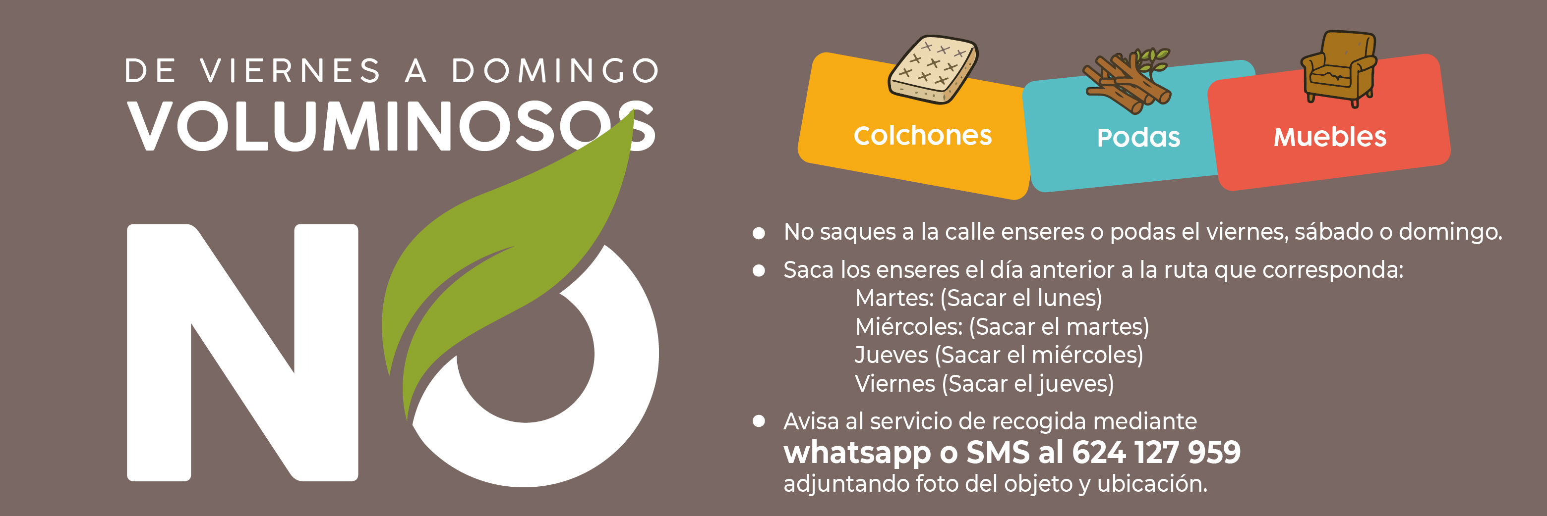 Los residuos voluminosos se recogen gratuitamente, de lunes a jueves, y es obligatorio avisar Con la llegada del verano, muchos vecinos renuevan sus casas y arreglan sus jardines, lo cual está muy bien. Y entonces algunos sacan los muebles, colchones viejos y podas a la calle, de cualquier manera, cualquier día, a cualquier hora, [...]